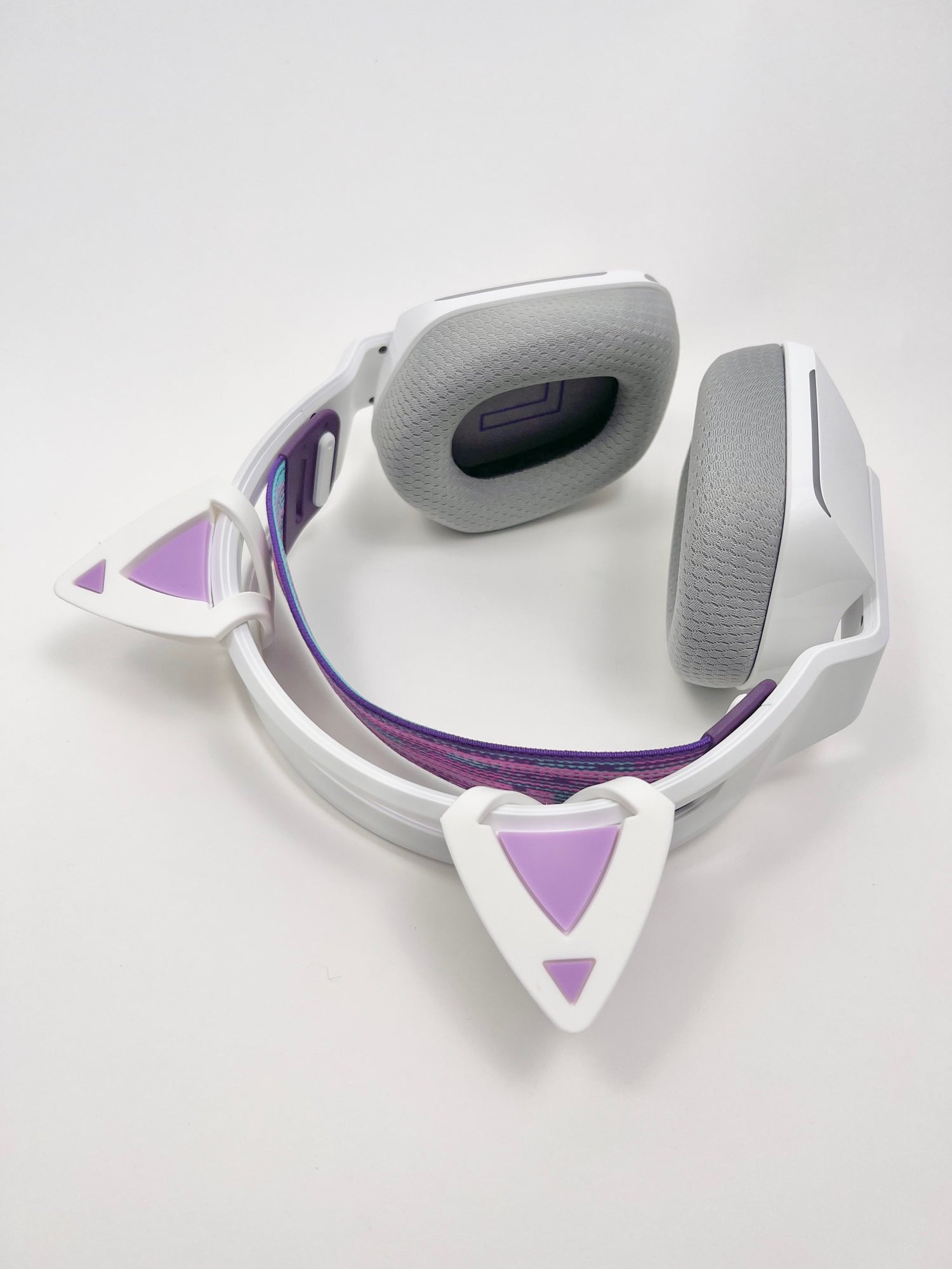 Pure white and lavender come together in Sugarplum, one of three shades in mimineko's first line of all-white kitty ears crafted specially for your headset. May visions of Sugarplum dance in your head!