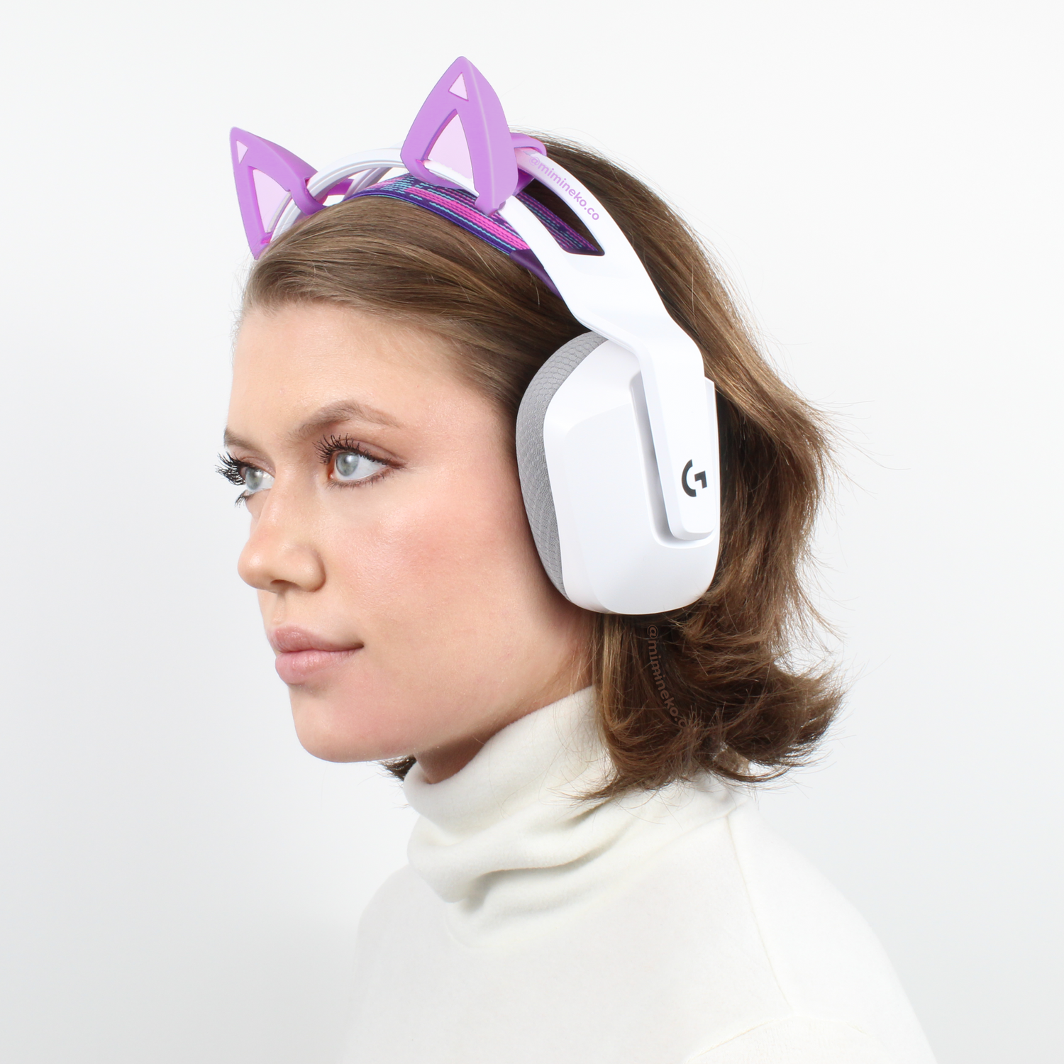 Imagine the whimsy of a whispered secret in a field of violets, as you grace your headset with your Violet Whisper kitty ears in violet and lavender. For those mischievous moods.